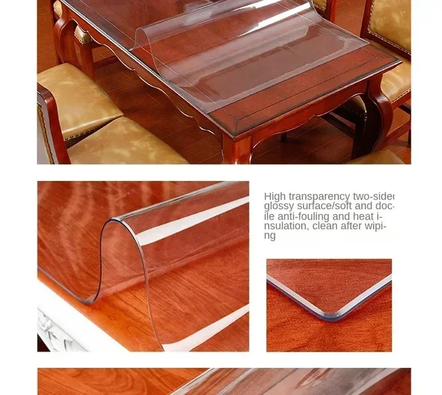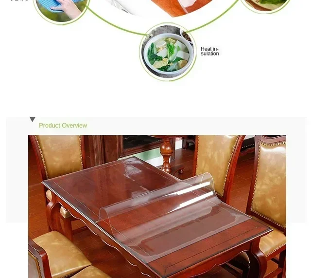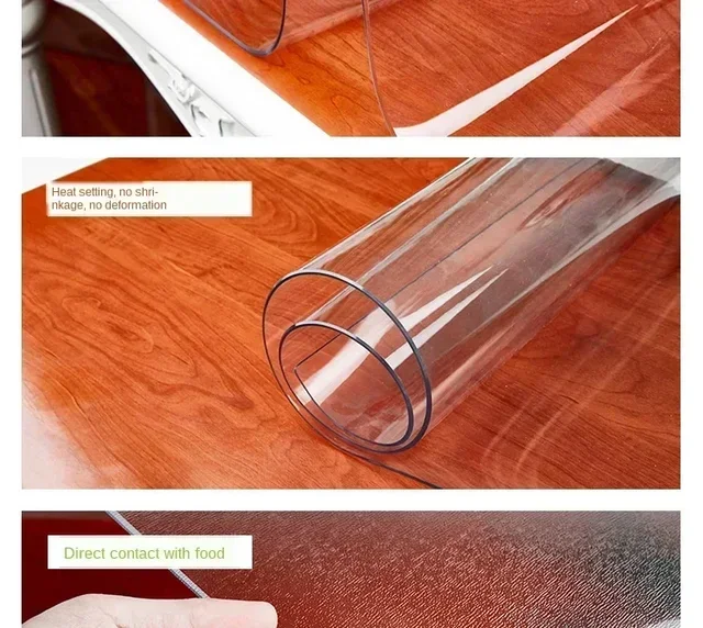 2. 1.5mm thick PVC clear table cover protector, which has better heat resistant, maximum to 176°f/80°c. please do not place any item that temperature higher than 100℃ on the table pad directly. an extra heat proof pad would be needed under this situation.