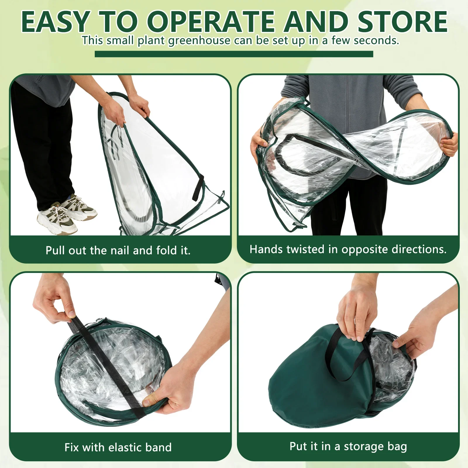 2.Simple Design: This small greenhouses cover can be set up in seconds, great for indoor or outdoor growing, which can be folded when not in use. The compact and portable design allows for easy storage and transportation, so you can take the greenhouse with you wherever you go