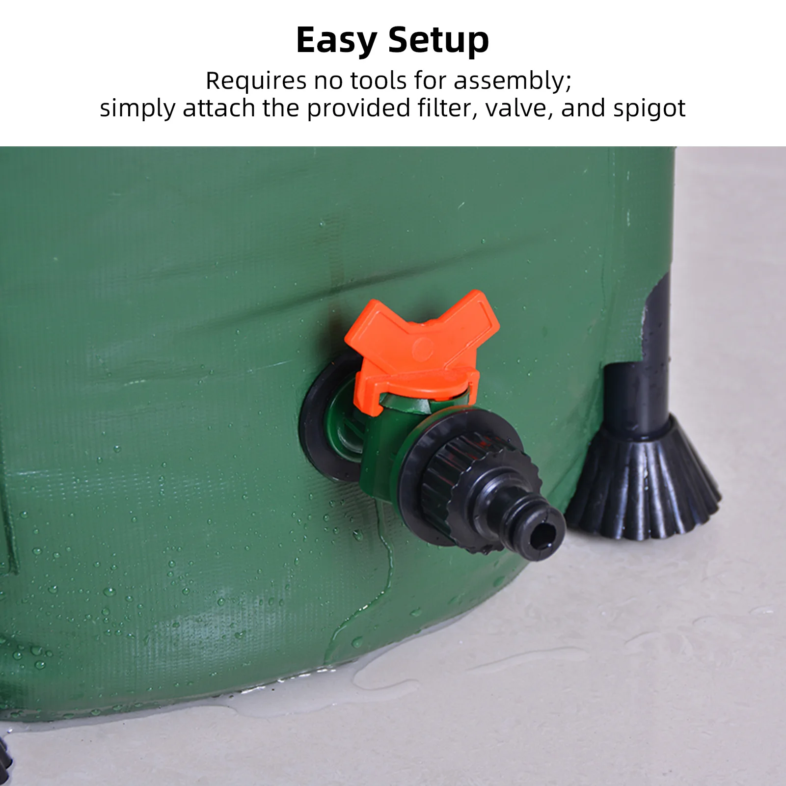 This rain barrel is perfect for indoor and outdoor gardening enthusiasts. It's designed for collecting and storing rainwater, reducing water bills, and promoting environmental sustainability. Made from heavy-duty UV-resistant 500D PVC tarpaulin, it's built to last.