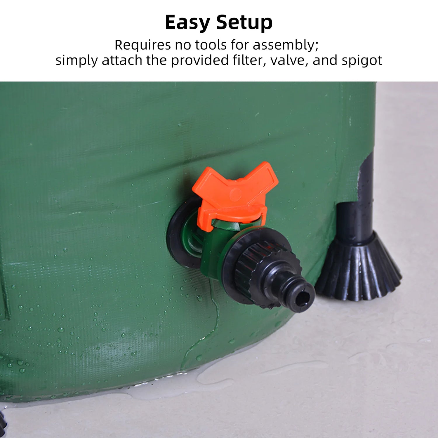 Easy Setup: Requires no tools for assembly; simply attach the provided filter, valve, and spigot.