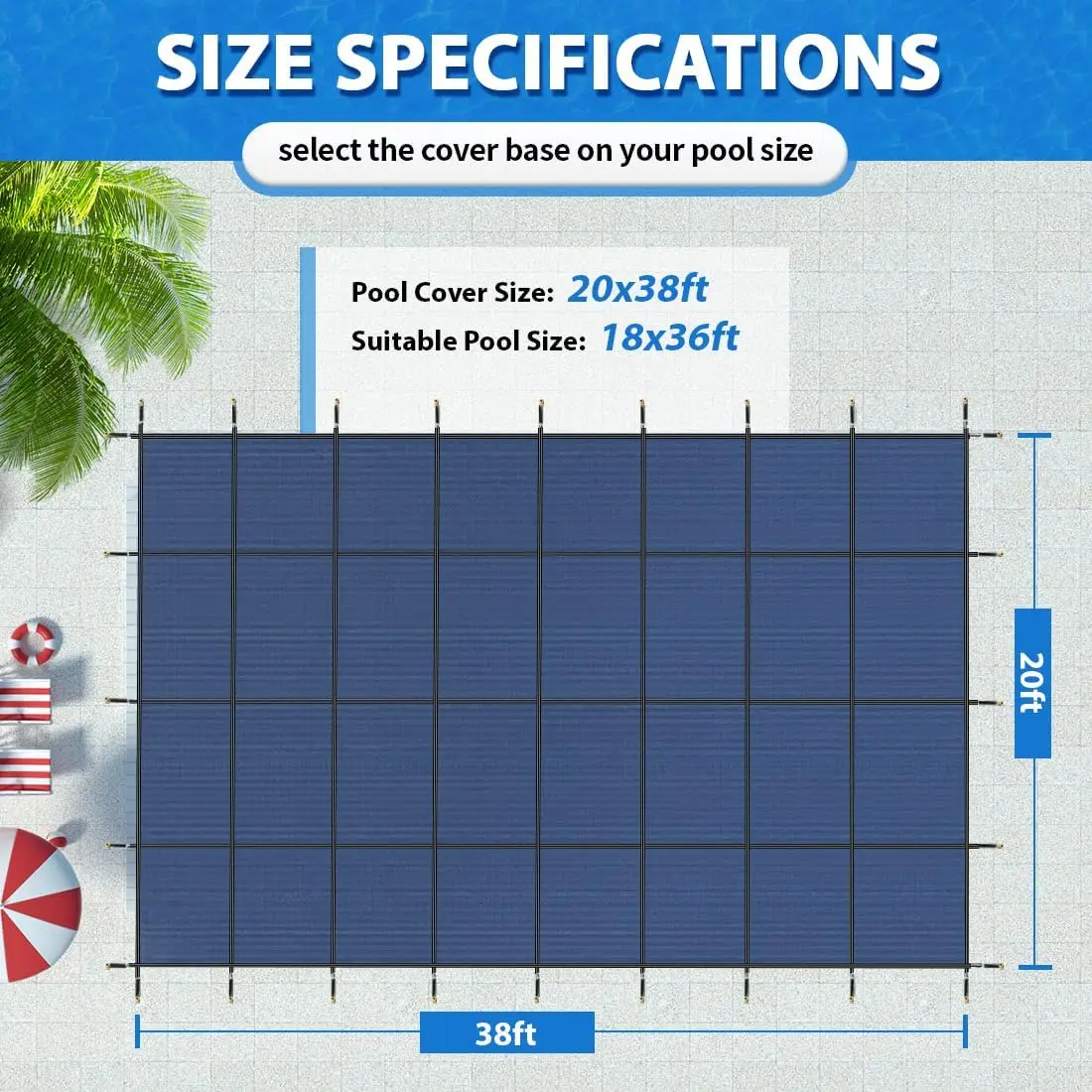 The tight mesh structure allows for efficient drainage while effectively blocking fallen leaves, snow and debris, ensuring your pool remains in pristine condition. The design of the safety pool cover minimizes sunlight penetration, ensuring a cleaner pool environment.